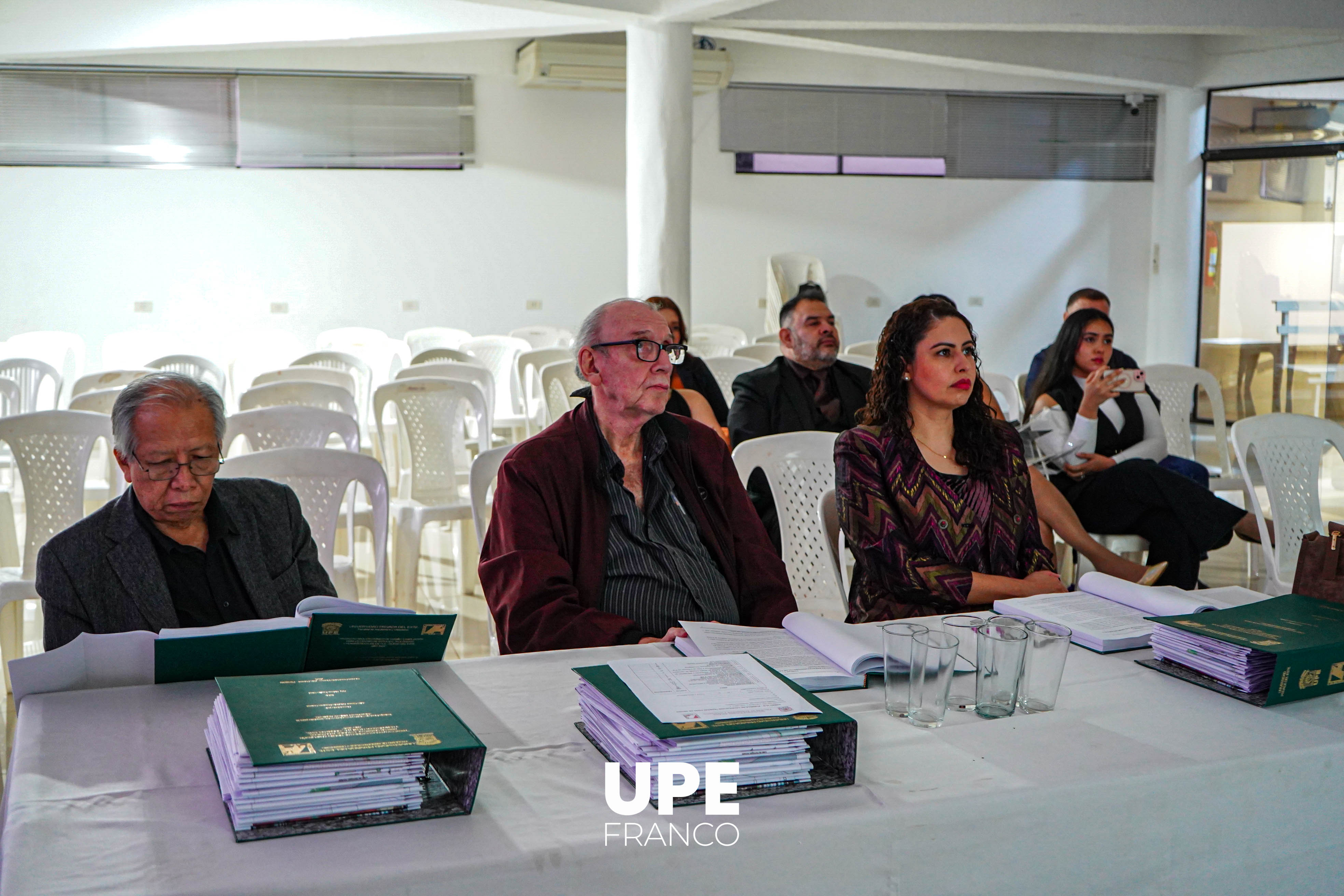 La mesa examinadora estuvo integrada por el decano de la Facultad de Arquitectura y Urbanismo, Arq. Francisco Ruffinelli; la Arq. Marly Lucía Godoy González; y el Arq. Mario Uzeda Avilés, encargado de la Dirección de Extensión e Investigación de la FAU – UPE, quienes evaluaron el trabajo final.