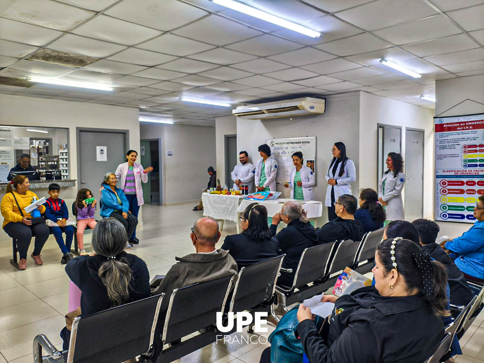 Con el propósito de promover una salud sostenible y fortalecer la educación alimentaria en la comunidad, la carrera de Nutrición de la UPE FRANCO dio inicio al primer ciclo de talleres semanales de Educación Nutricional en el Hospital del Instituto de Previsión Social (IPS) de Presidente Franco, bajo el lema “Nutrición que transforma: hacia una salud sostenible”.