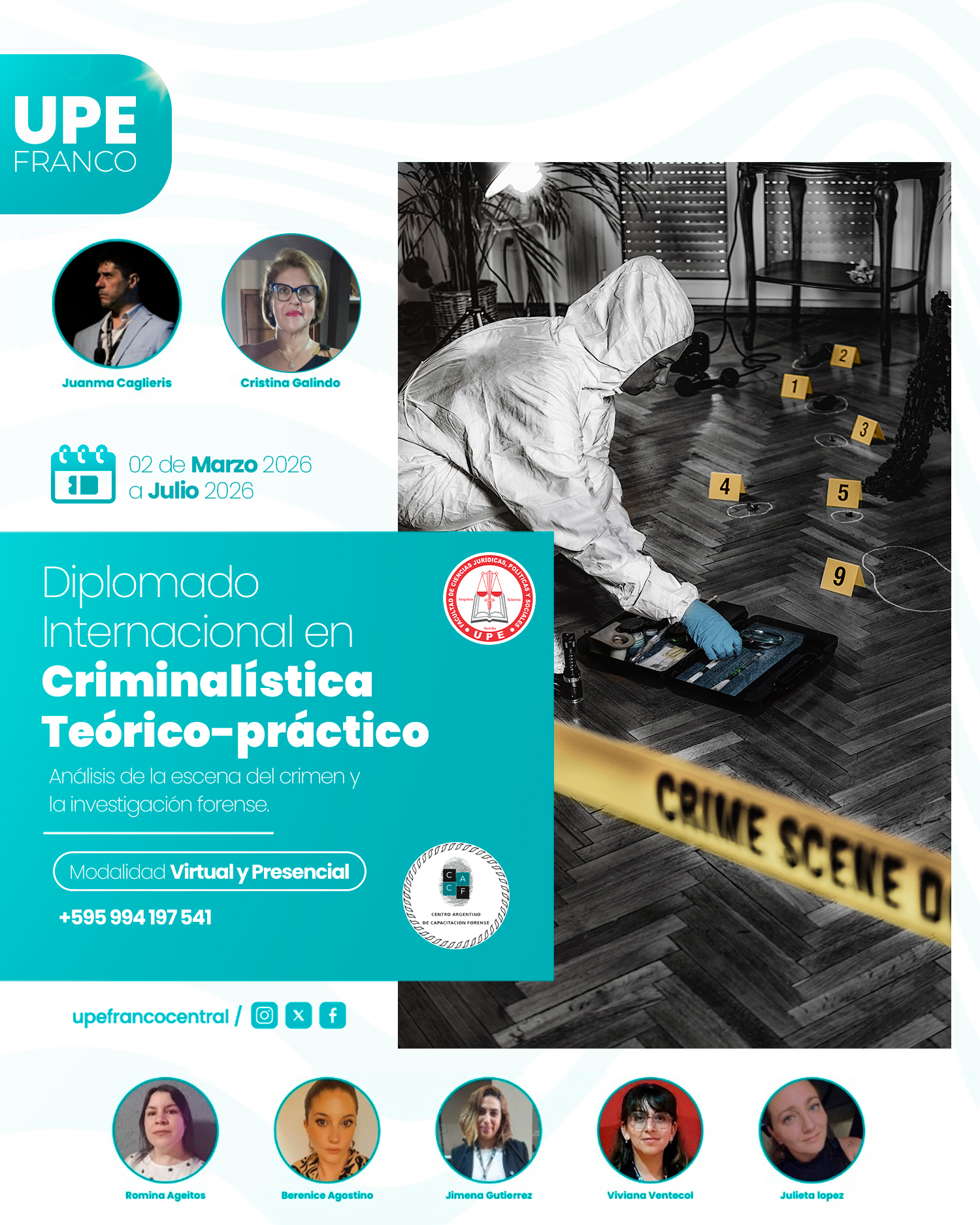 La Facultad de Ciencias Jurídicas, Políticas y Sociales de la Universidad Privada del Este, sede Presidente Franco, anuncia la apertura de la convocatoria al Diplomado Internacional en Criminalística Teórico–Práctico, una propuesta académica orientada al análisis de la escena del crimen y la investigación forense.